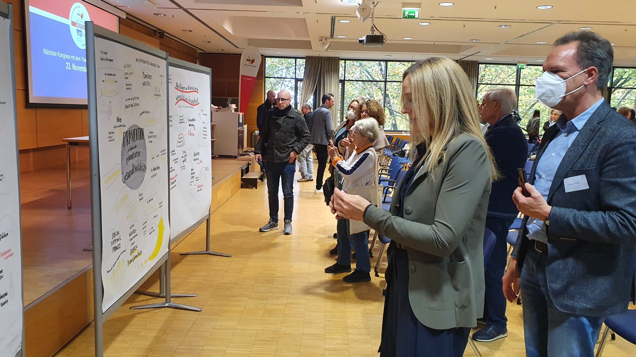 Nicht, wenn es auf einem separaten Bildschirm läuft und die Speaker im Zentrum stehen. Tatsächlich passiert oft das Gegenteil: Teilnehmer erzählen mir, dass sie zu meiner Visualisierung schauen, wenn sie den Inhalten nicht mehr folgen können – statt aufs Smartphone. Das Graphic Recording holt sie zurück ins Thema, statt sie rauszureißen.